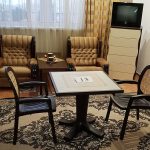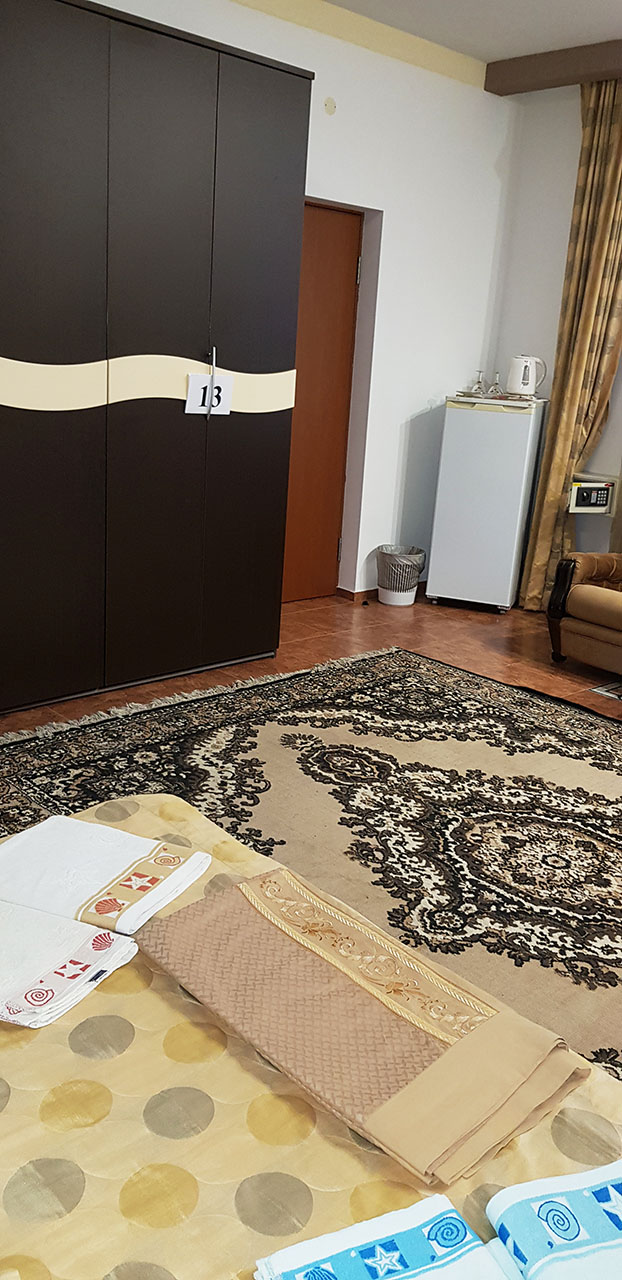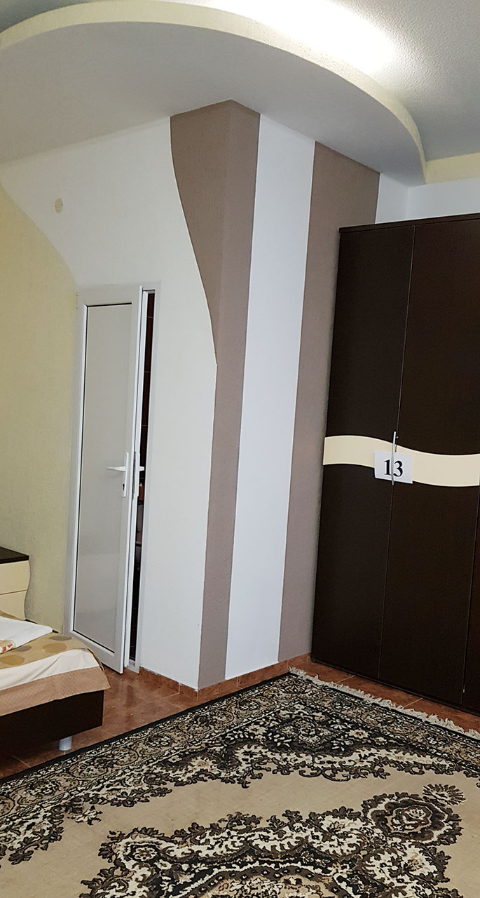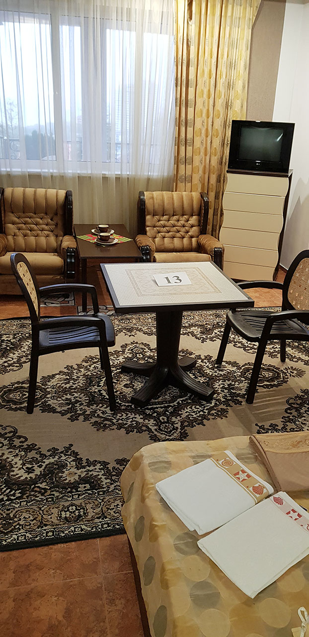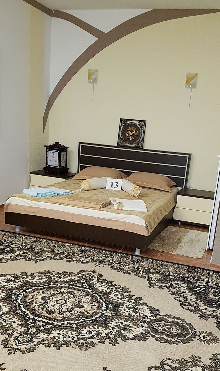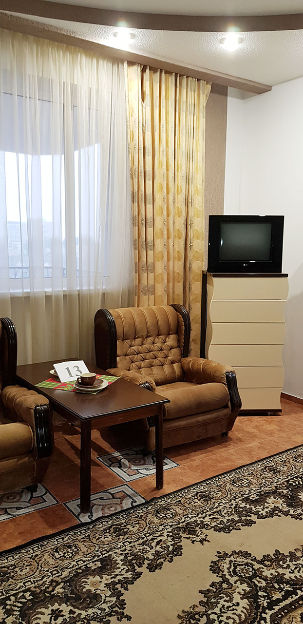 Студия, с двухспальной кроватью и двумя креслами. В номере есть туалет и душ.